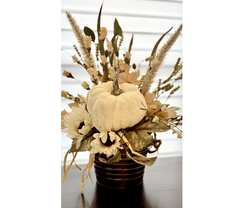 🤍 3:45 PM – Rustic White Pumpkin Arrangement – $57